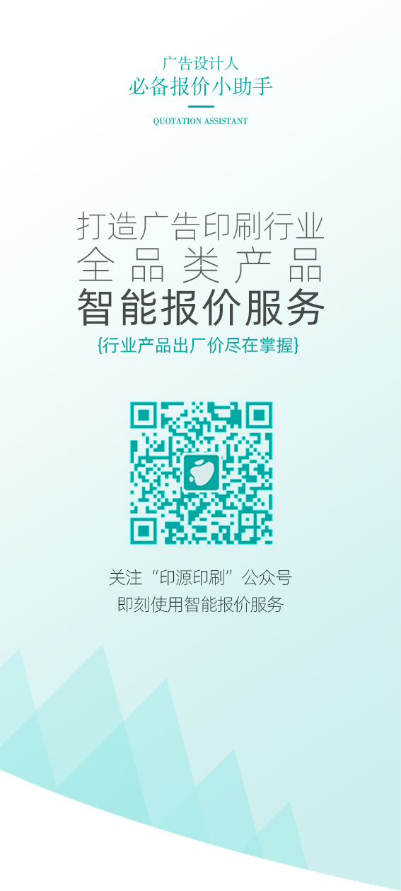 我们致力于打造广告印刷行业全品类产品自助报价服务,让广告印刷制作更简单、更高效!关注我们微信公众号,马上使用掌上报价小助手,让你工作效率翻倍提高。客服微信号:YYYS-TOP