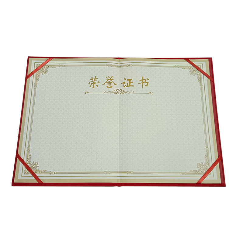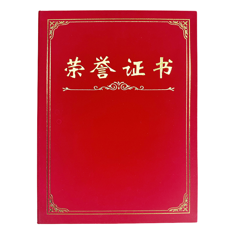 经典绒面荣誉证书(红色),烫金(亮黄金),配套单张120克新美感高白;装OPP袋;